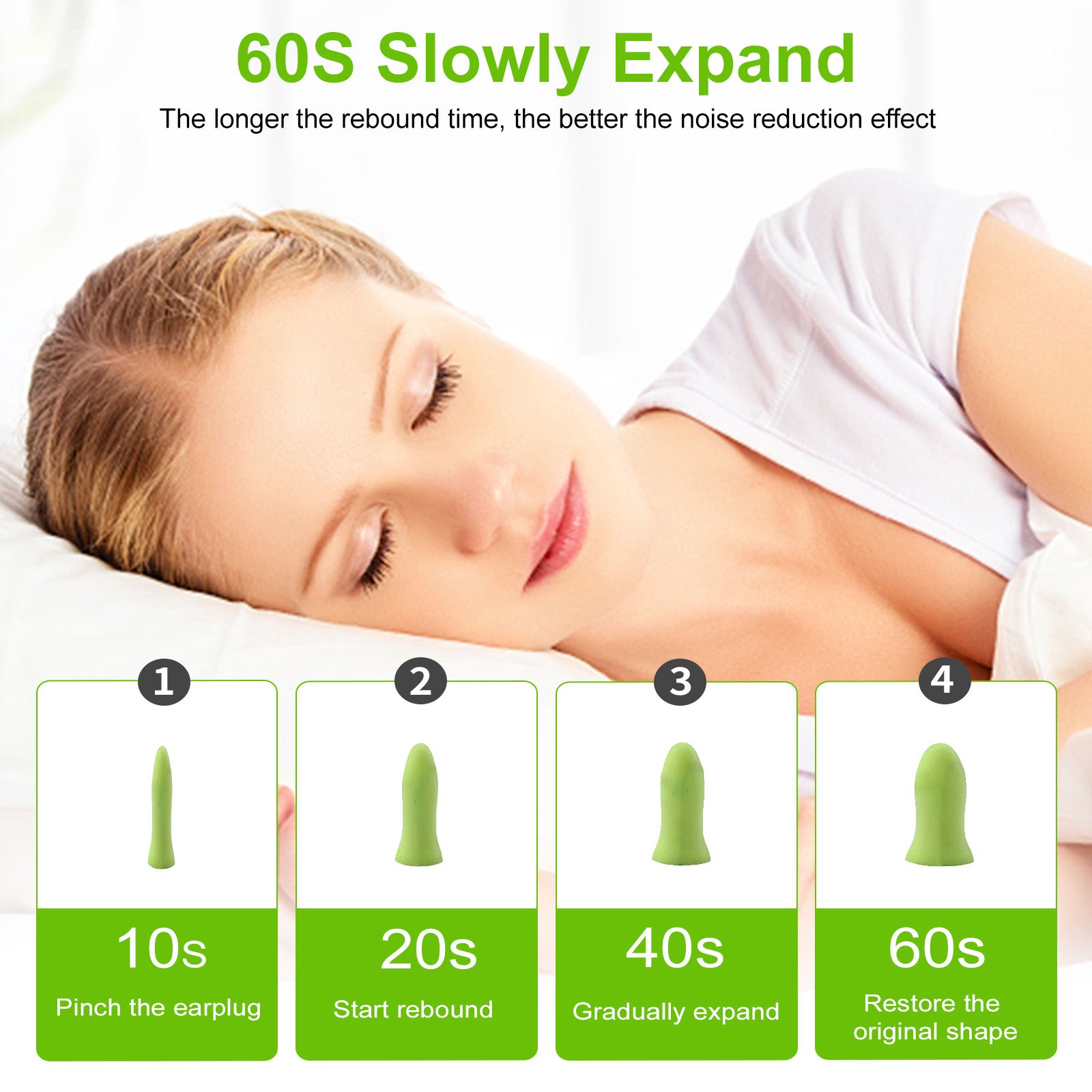 - SUPER SLOW REBOUND FOR COMFORT: Made from ultra-soft, non-toxic PU foam, these earplugs slowly conform to your ear canal (20-60 seconds), ensuring a snug and comfortable fit.